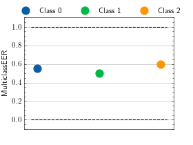 >>> # Example plotting a single >>> import torch >>> from torchmetrics.classification import MulticlassEER >>> metric = MulticlassEER(num_classes=3) >>> metric.update(torch.randn(20, 3), torch.randint(3,(20,))) >>> fig_, ax_ = metric.plot()