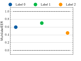 >>> # Example plotting a single >>> import torch >>> from torchmetrics.classification import MultilabelEER >>> metric = MultilabelEER(num_labels=3) >>> metric.update(torch.rand(20,3), torch.randint(2, (20,3))) >>> fig_, ax_ = metric.plot()
