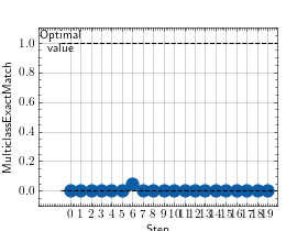 >>> # Example plotting multiple values >>> from torch import rand, randint >>> from torchmetrics.classification import MultilabelExactMatch >>> metric = MultilabelExactMatch(num_labels=3) >>> values = [ ] >>> for _ in range(10): ... values.append(metric(randint(2, (20, 3, 5)), randint(2, (20, 3, 5)))) >>> fig_, ax_ = metric.plot(values)