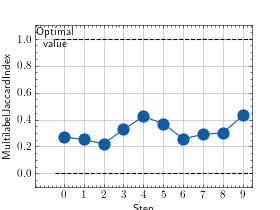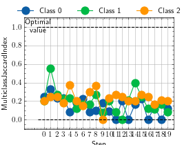>>> # Example plotting multiple values >>> from torch import rand, randint >>> from torchmetrics.classification import MultilabelJaccardIndex >>> metric = MultilabelJaccardIndex(num_labels=3) >>> values = [ ] >>> for _ in range(10): ... values.append(metric(randint(2, (20, 3)), randint(2, (20, 3)))) >>> fig_, ax_ = metric.plot(values)