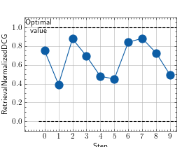 >>> import torch >>> from torchmetrics.retrieval import RetrievalNormalizedDCG >>> # Example plotting multiple values >>> metric = RetrievalNormalizedDCG() >>> values = [] >>> for _ in range(10): ... values.append(metric(torch.rand(10,), torch.randint(2, (10,)), indexes=torch.randint(2,(10,)))) >>> fig, ax = metric.plot(values)